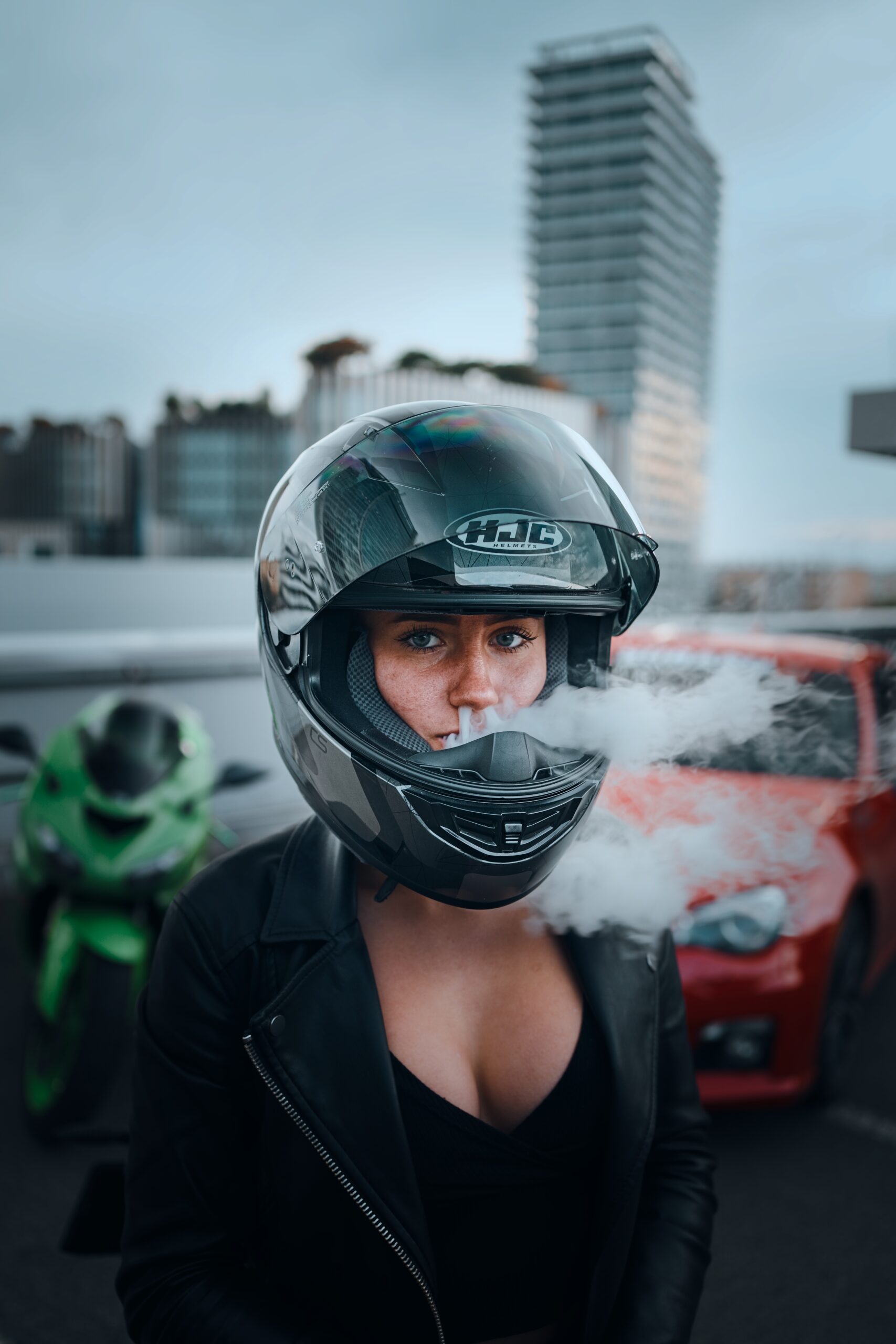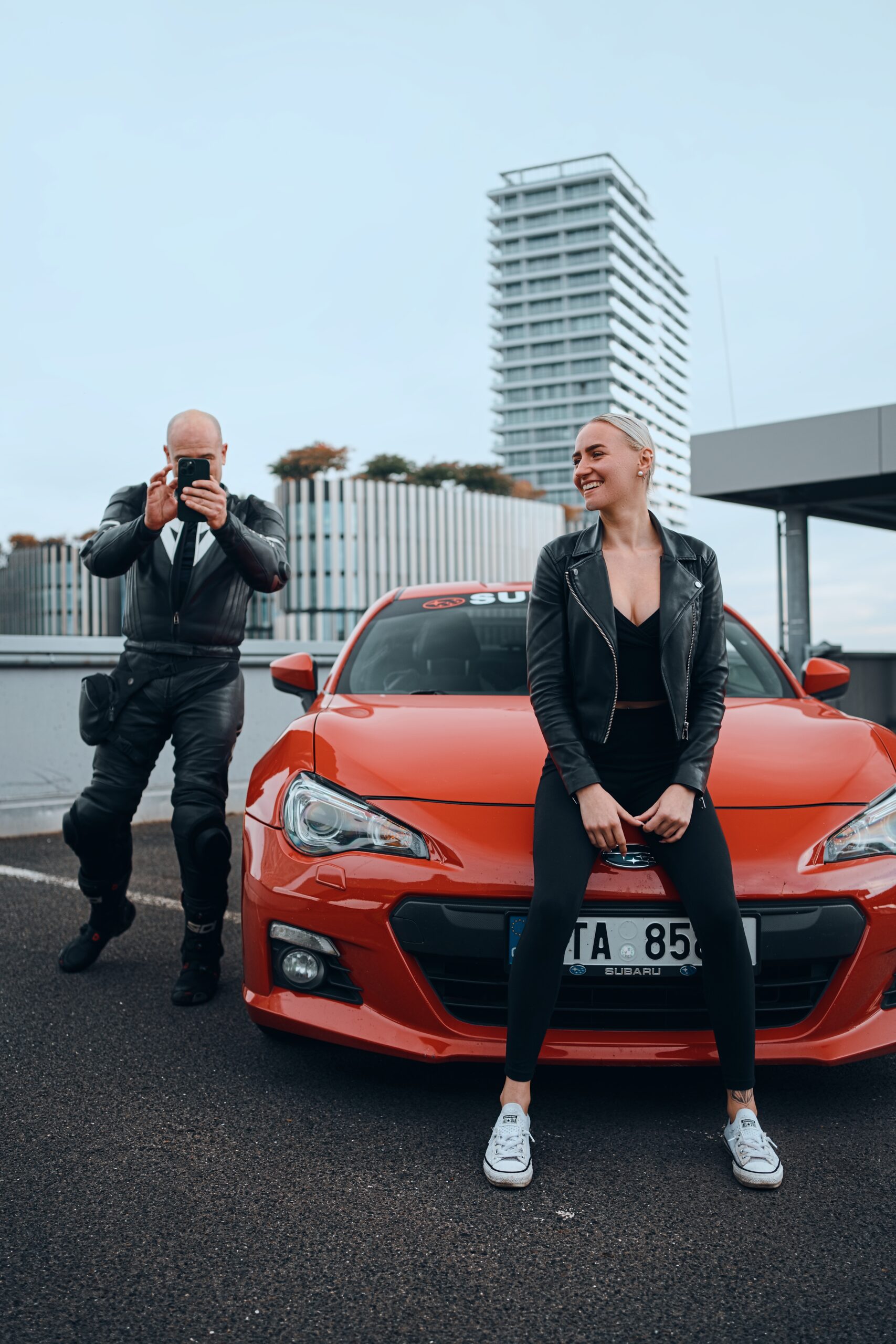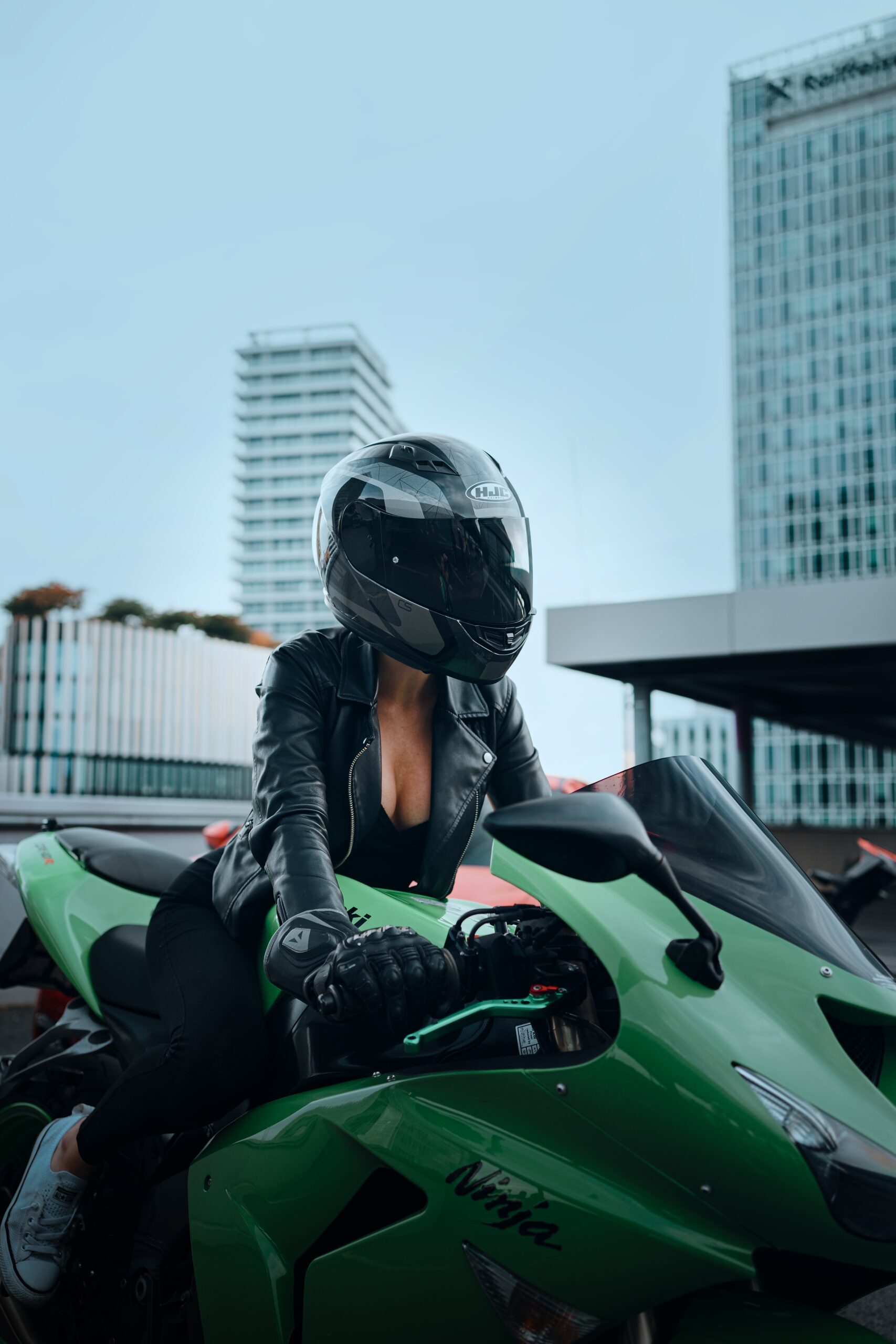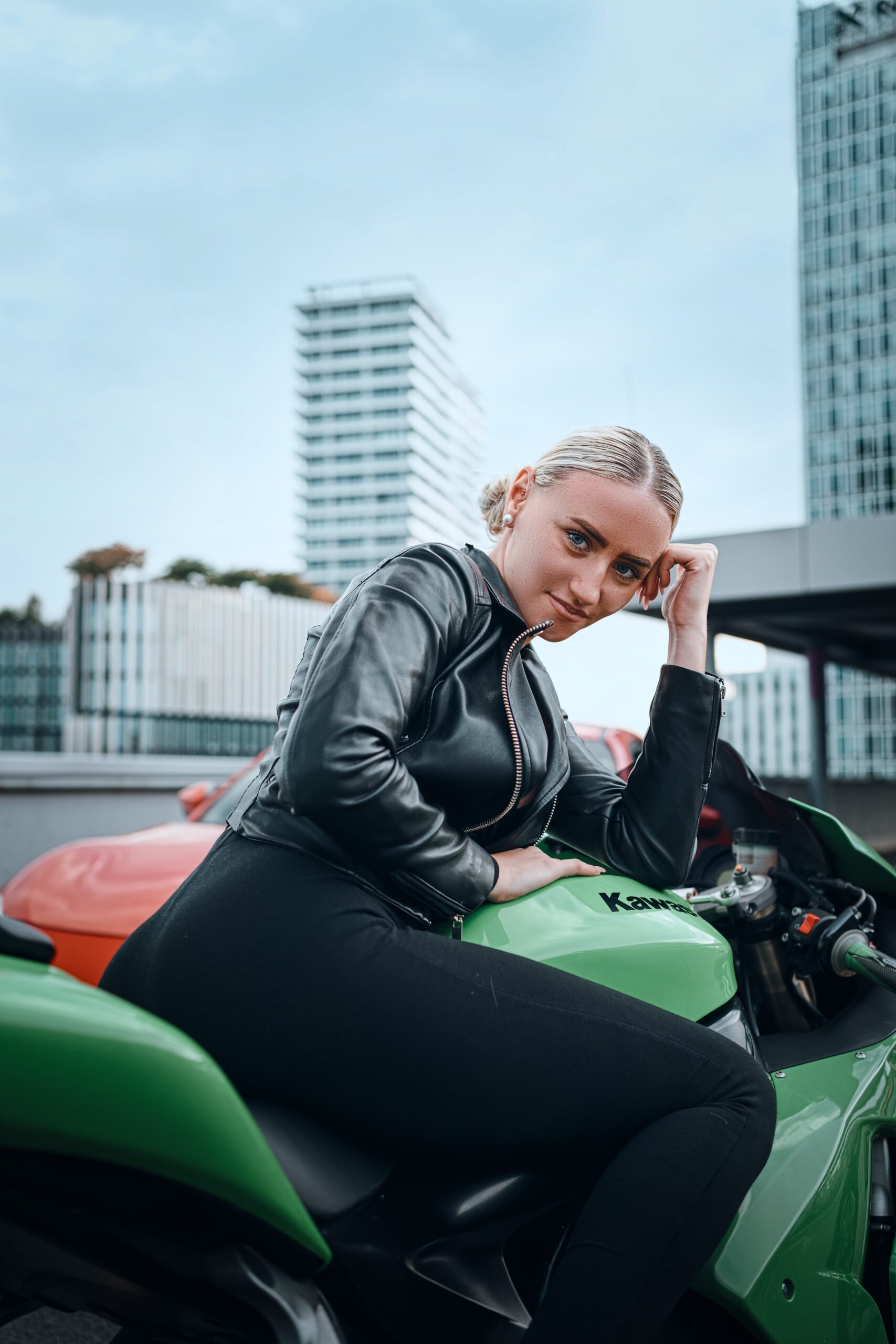 Alexandra vytvořila s motorkou dokonalý pár. Její fotky působí silně a zároveň elegantně, jako by přímo patřily do prestižního motorkářského kalendáře.