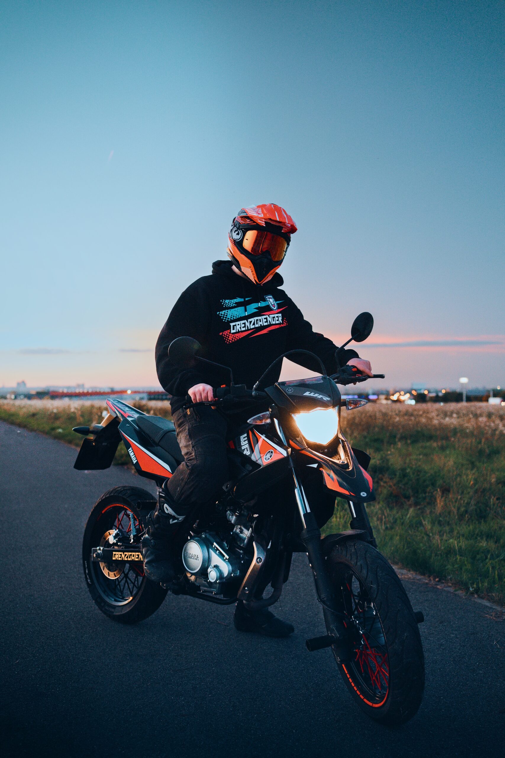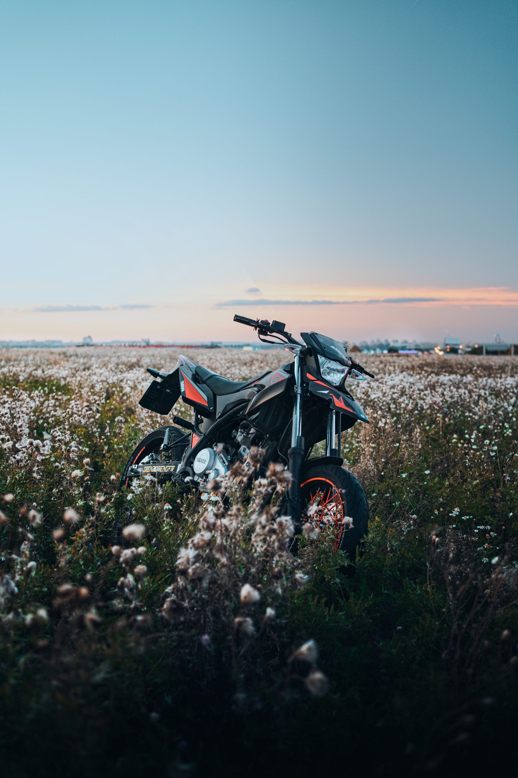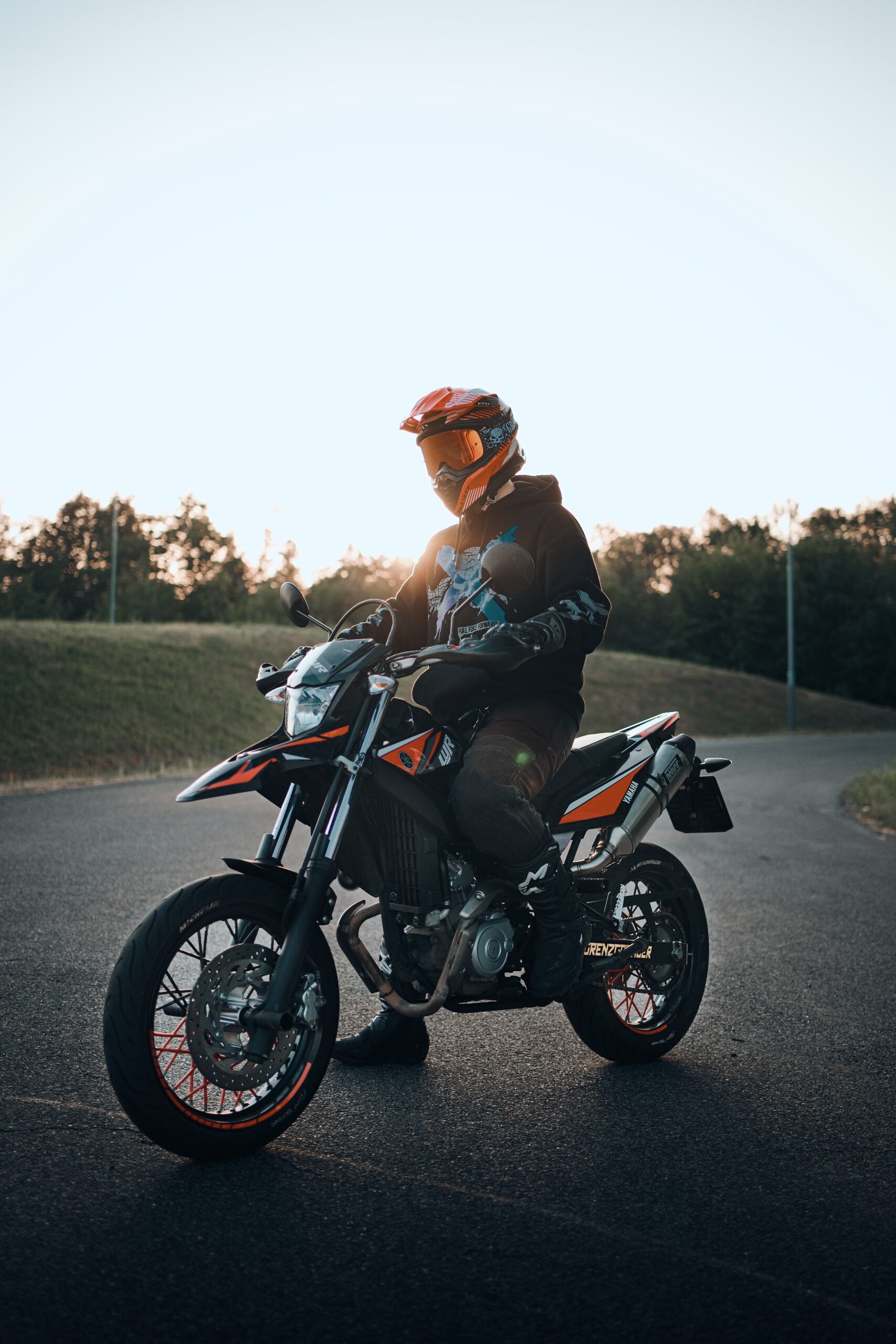Dom a jeho WRF 125 předvedli sílu a říz na focení, které proběhlo jak na parkovišti, tak v otevřeném poli. Snímky zachycují dravost motorky i energii jezdce v různých prostředích.