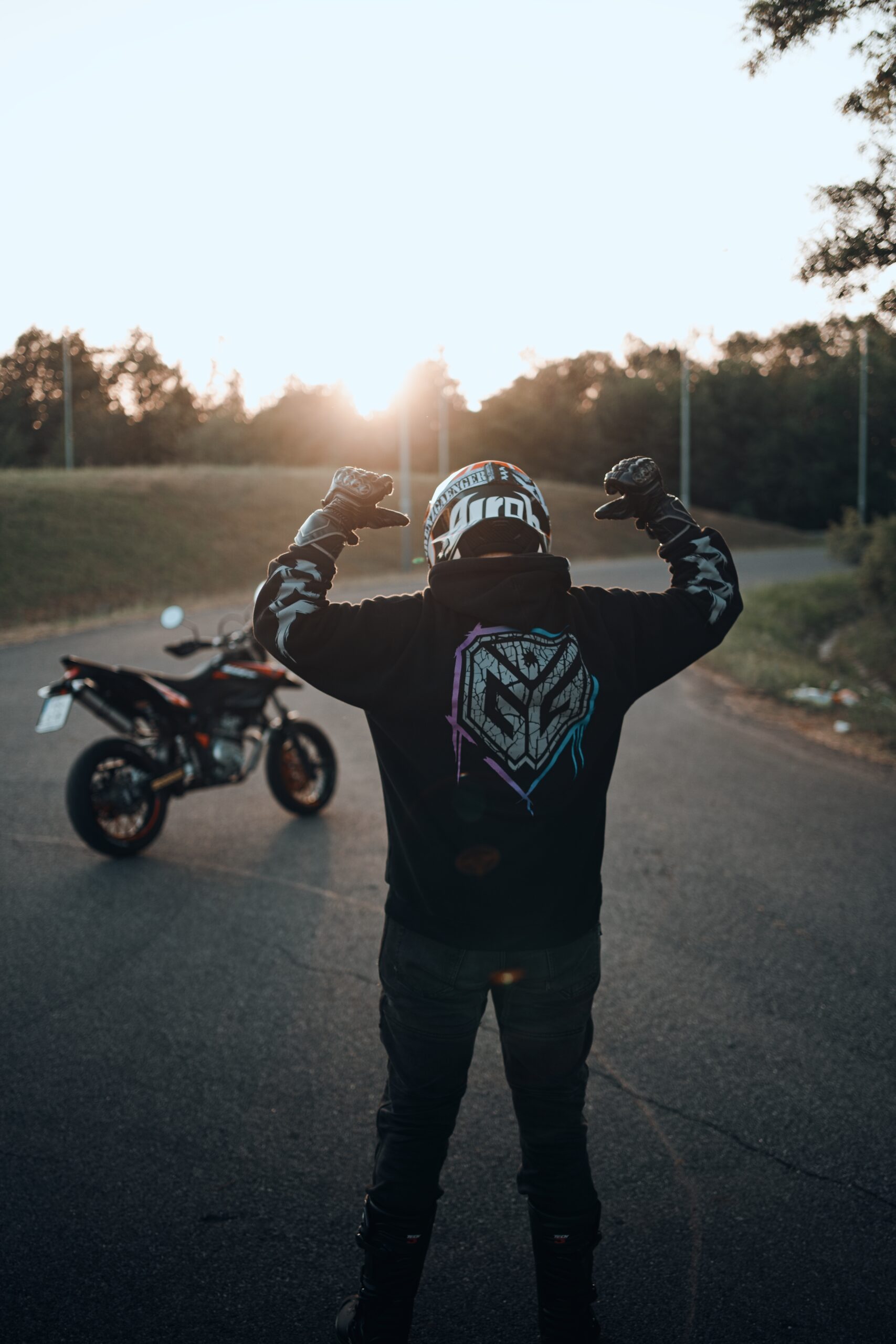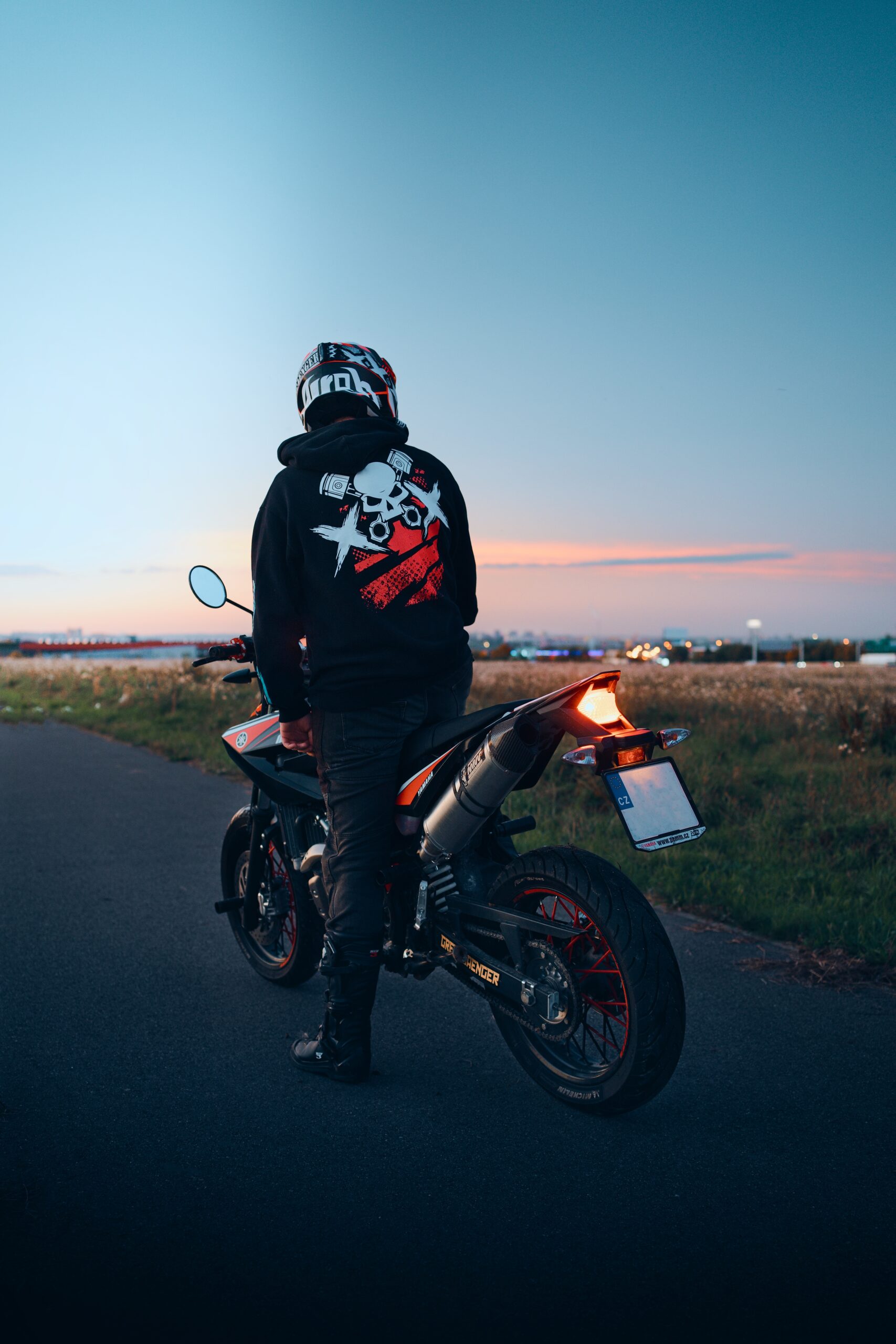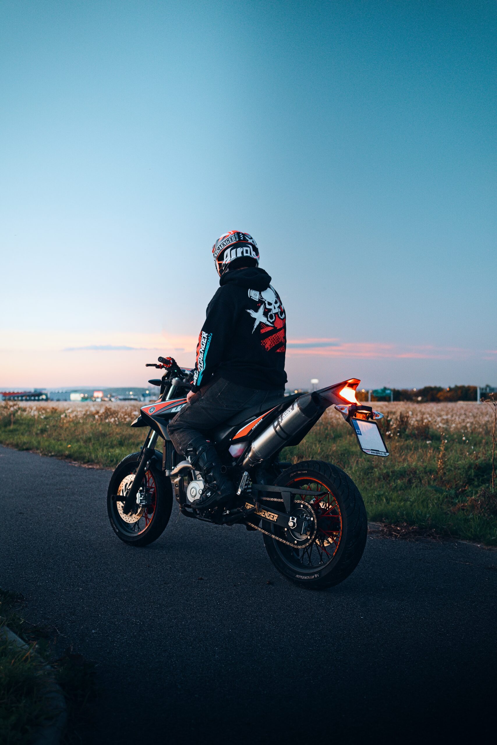 Dom a jeho WRF 125 předvedli sílu a říz na focení, které proběhlo jak na parkovišti, tak v otevřeném poli. Snímky zachycují dravost motorky i energii jezdce v různých prostředích.