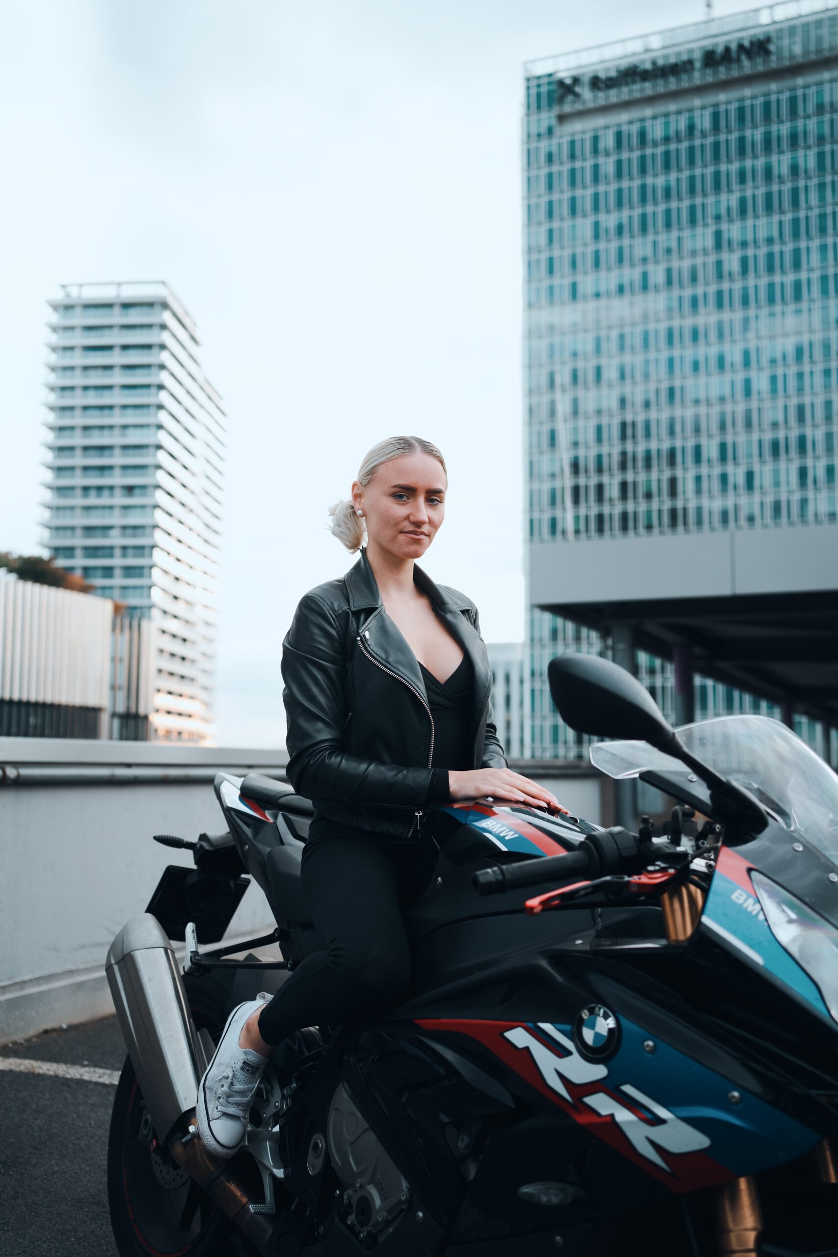 Alexandra vytvořila s motorkou dokonalý pár. Její fotky působí silně a zároveň elegantně, jako by přímo patřily do prestižního motorkářského kalendáře.