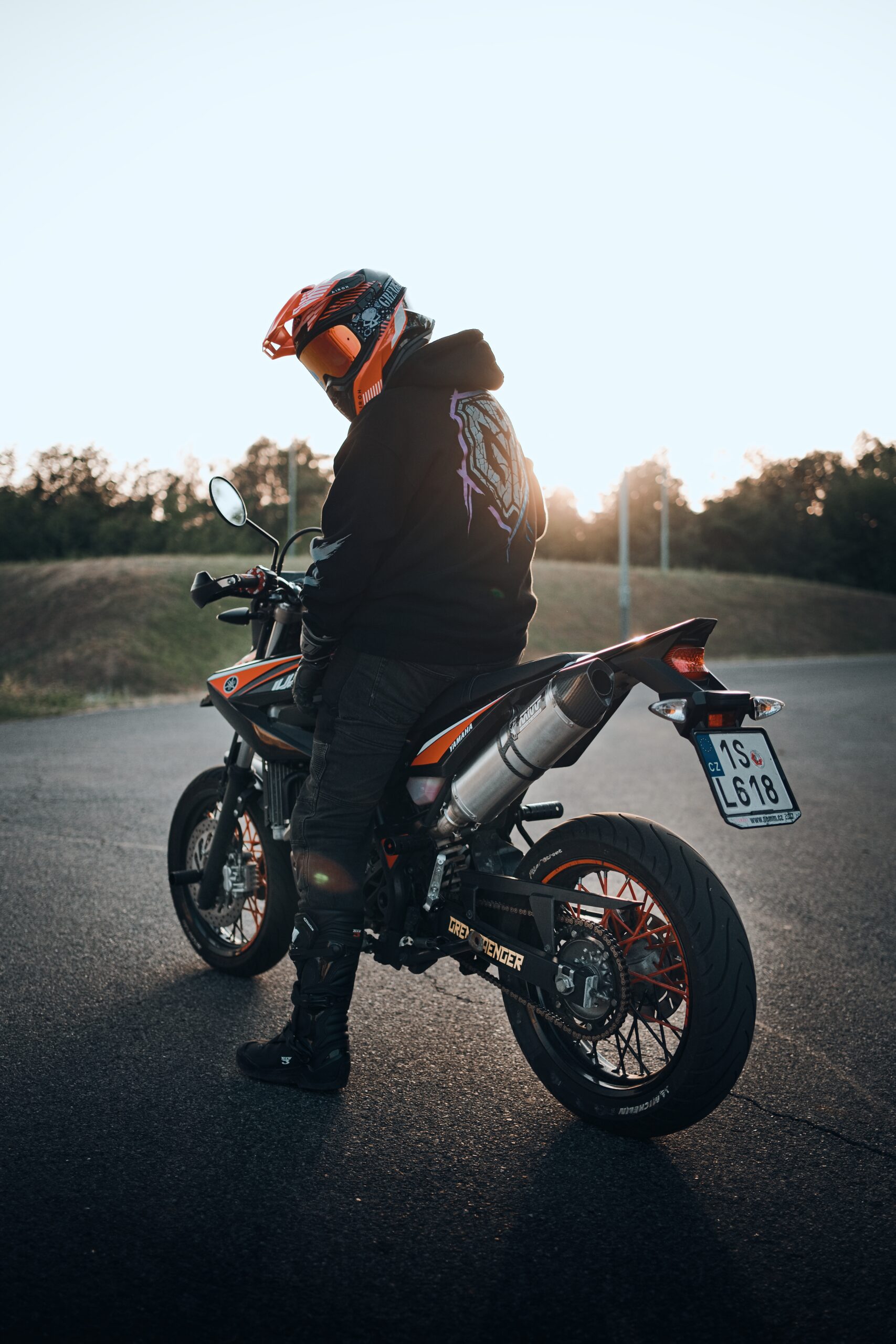 Dom a jeho WRF 125 předvedli sílu a říz na focení, které proběhlo jak na parkovišti, tak v otevřeném poli. Snímky zachycují dravost motorky i energii jezdce v různých prostředích.